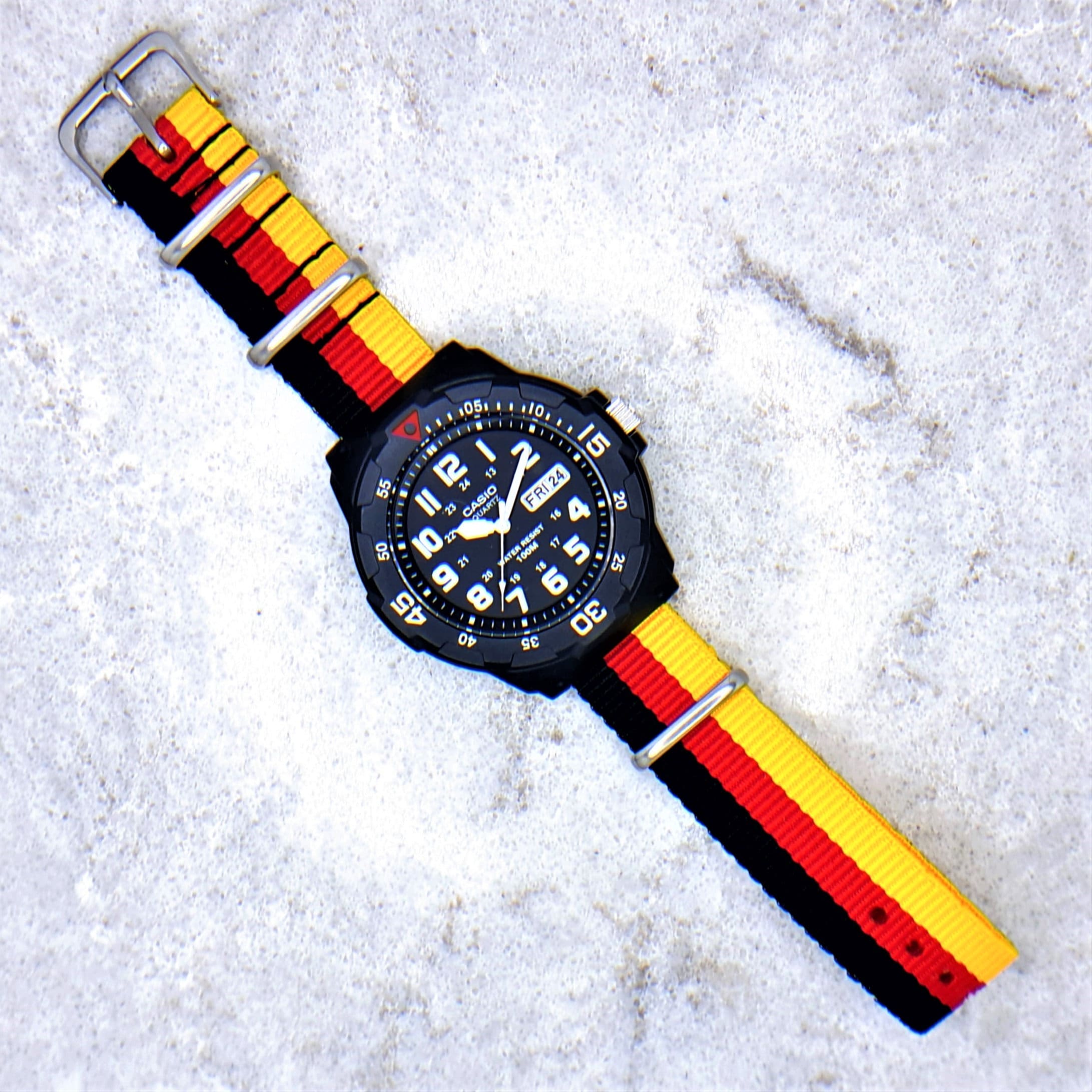 Casio Dive Watch With A German Flag Belgian Flag Nylon Strap Etsy Uk